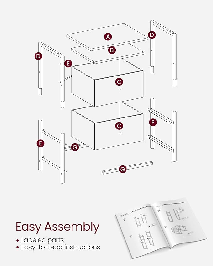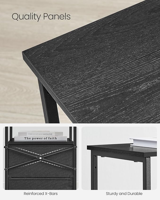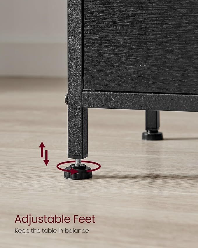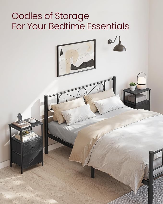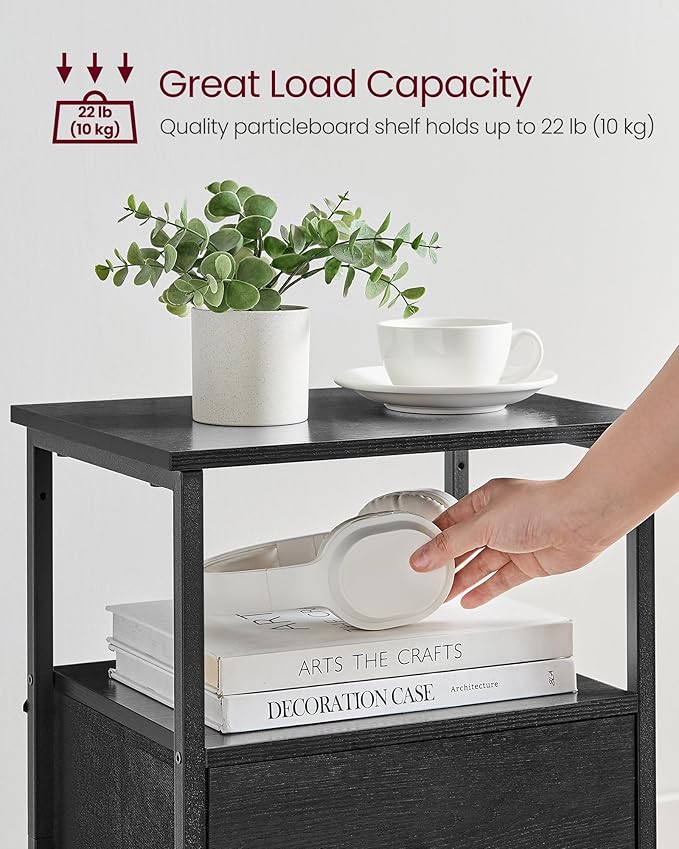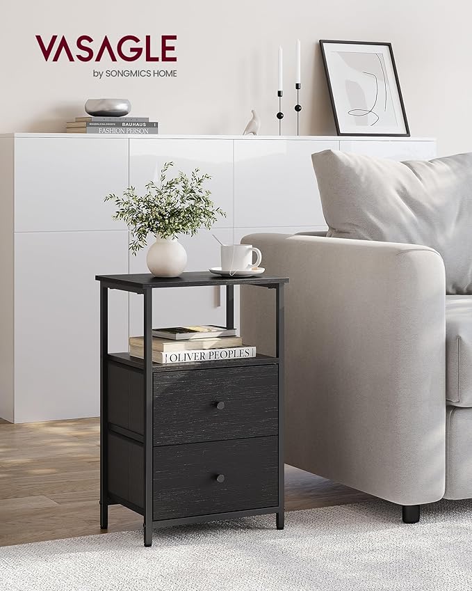 VASAGLE Nightstand Set of 2, Side Tables with 2 Fabric Drawers, 24-Inch Tall End Tables with Storage Shelf, Bedroom, Ash Black and Black ULGS225B21