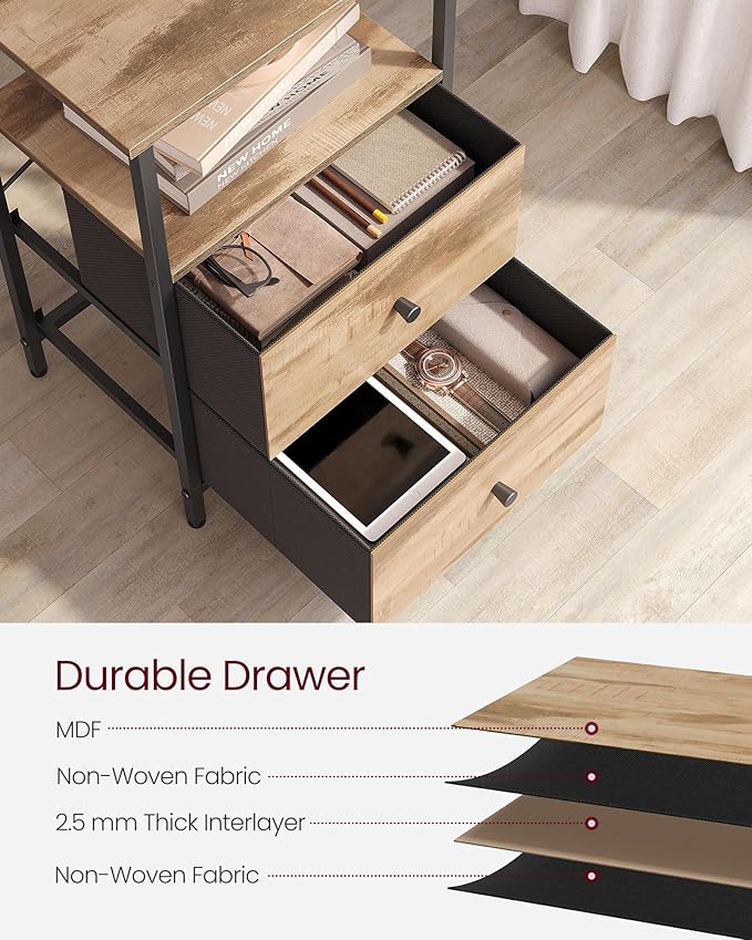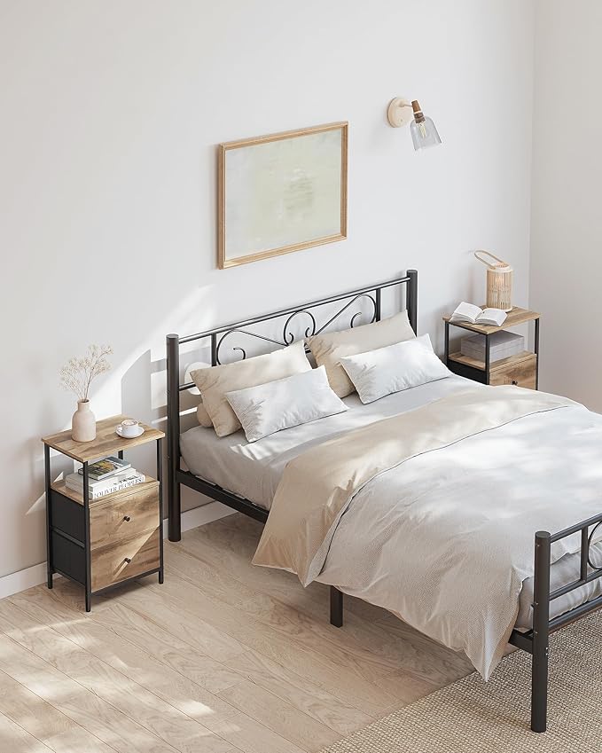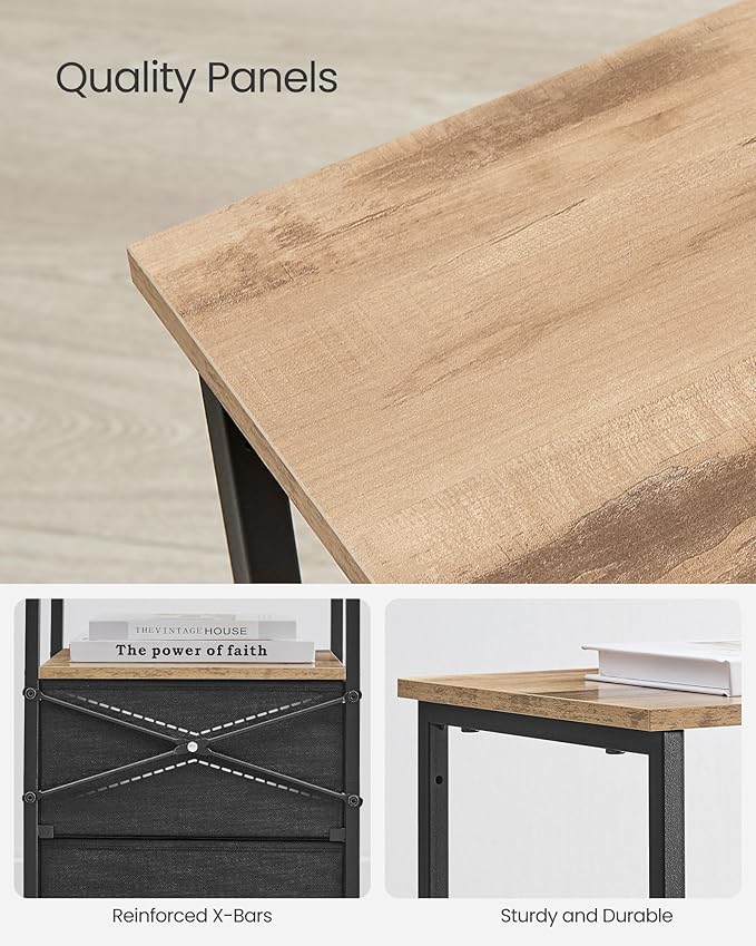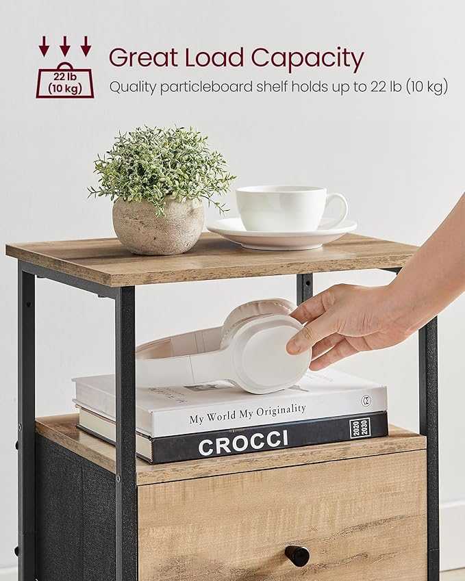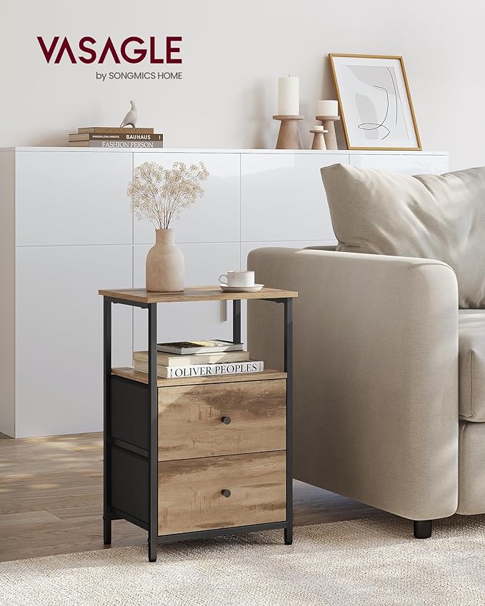 VASAGLE Nightstand, Side Table with 2 Fabric Drawers, 24-Inch Tall End Table with Storage Shelf, Bedroom, Camel Brown and Black ULGS025K50