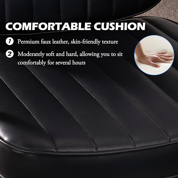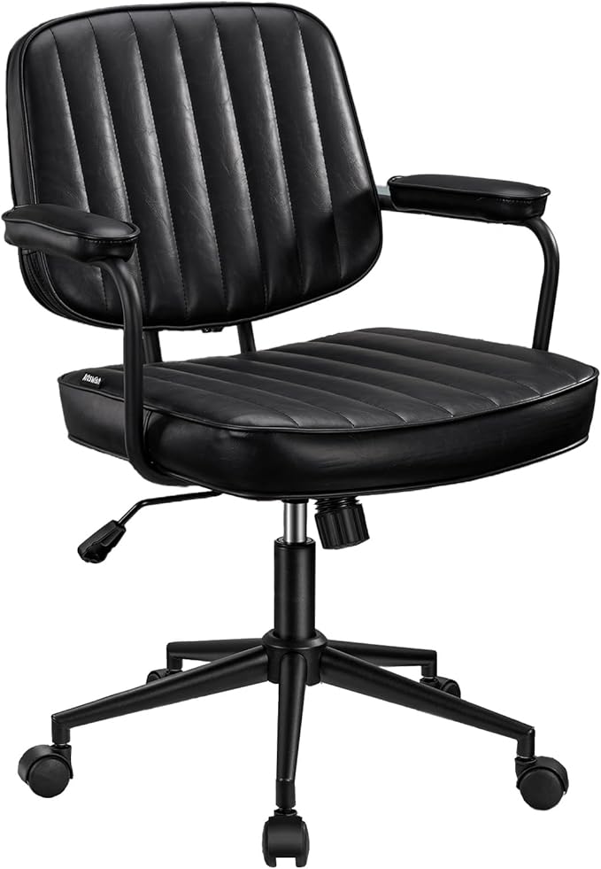 Artswish Mid Century Office Chair, Black Leather Desk Chair with Wheels and Arms, Adjustable Seat Height and Backrest, Suitable for Home or Office Use