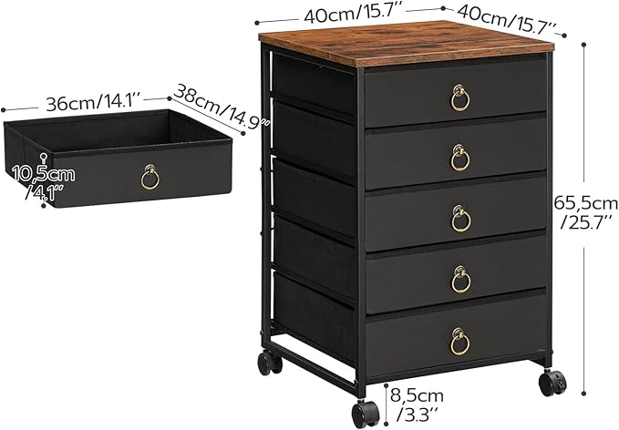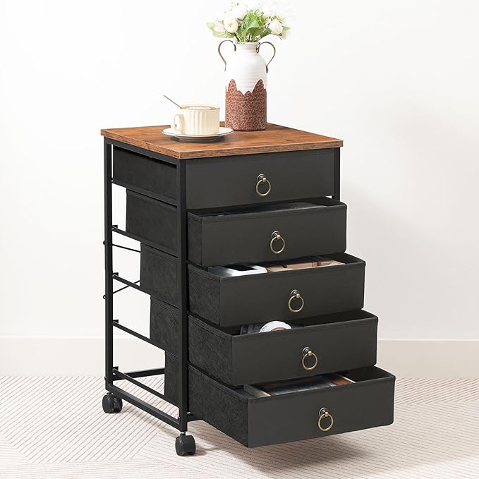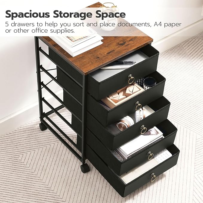 HOOBRO 5-Drawer Chest, File Cabinet, Office Cabinet with Drawers, Rolling Printer Stand, Filing Cabinet for Living Room, Home Office, Nonwovens Drawer, Easy Assembly, Black BFK50WJ01