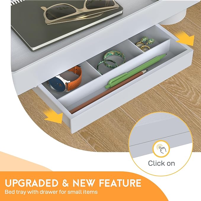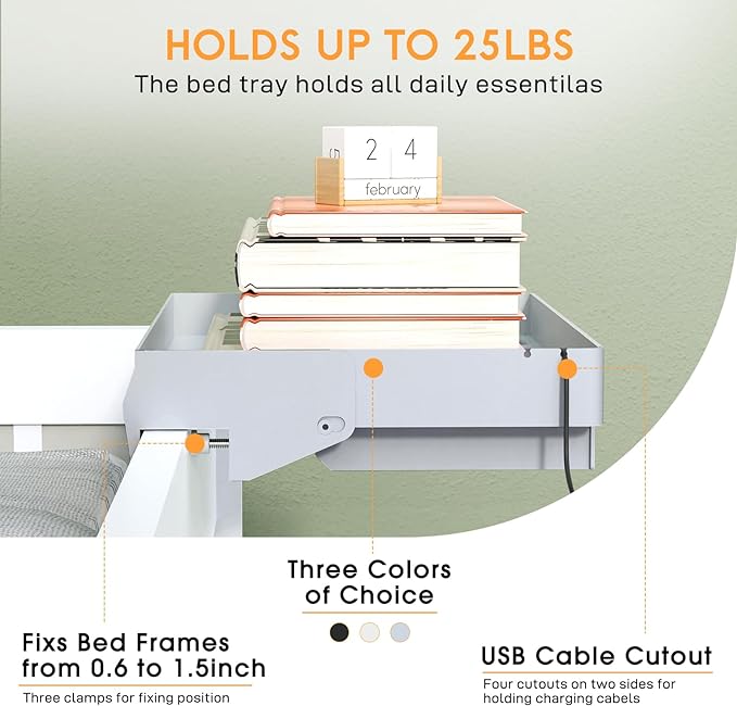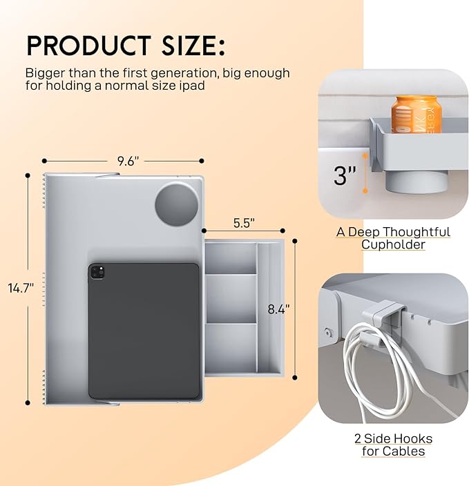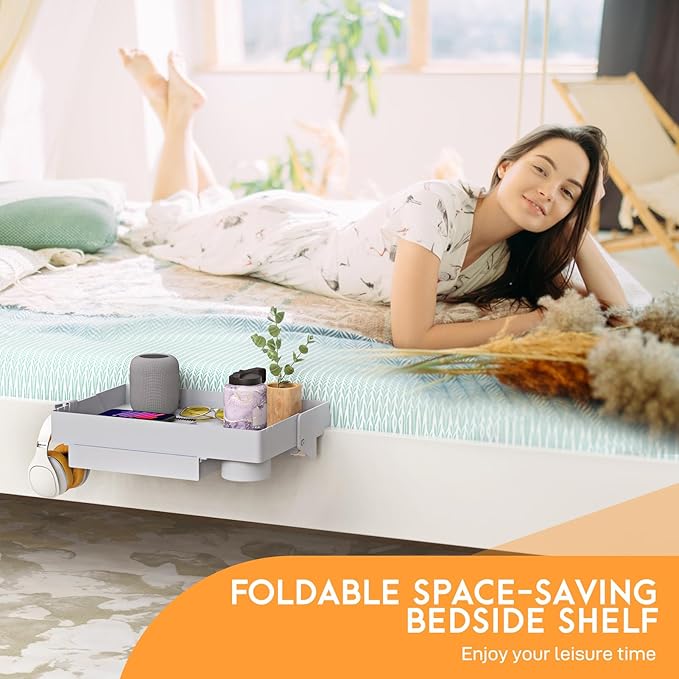 About This SPACELEAD Bedside Shelf for Bed – College Dorm Room Clip On Nightstand with Cup Holder & Cord Holder&Drawer...