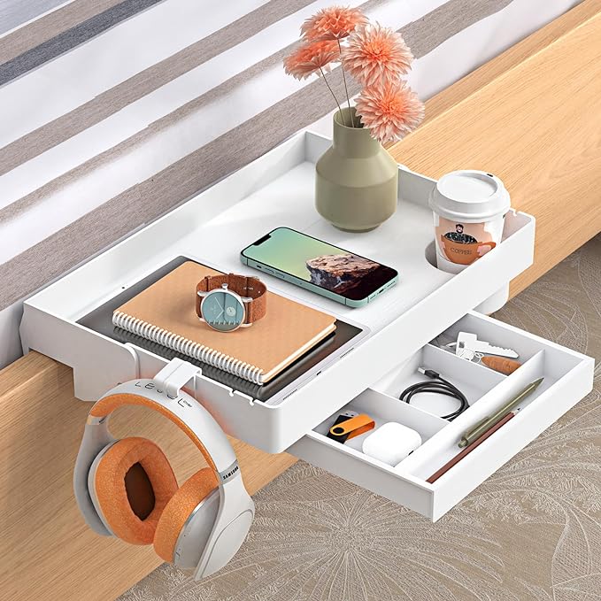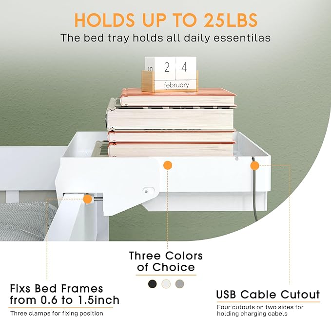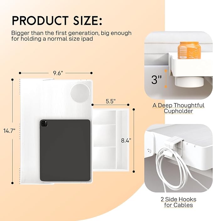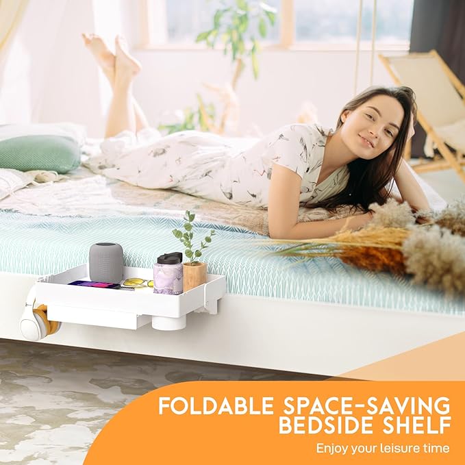 About This SPACELEAD Bedside Shelf for Bed – College Dorm Room Clip On Nightstand with Cup Holder & Cord Holder&Drawer...
