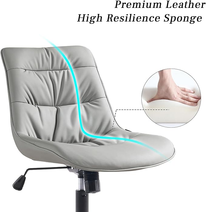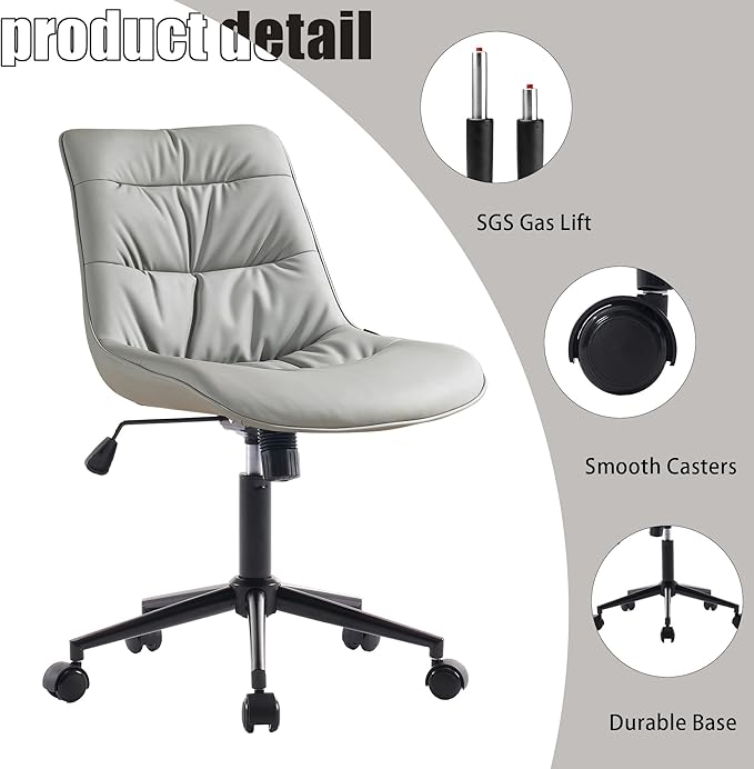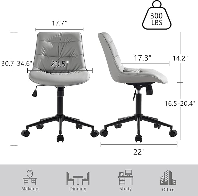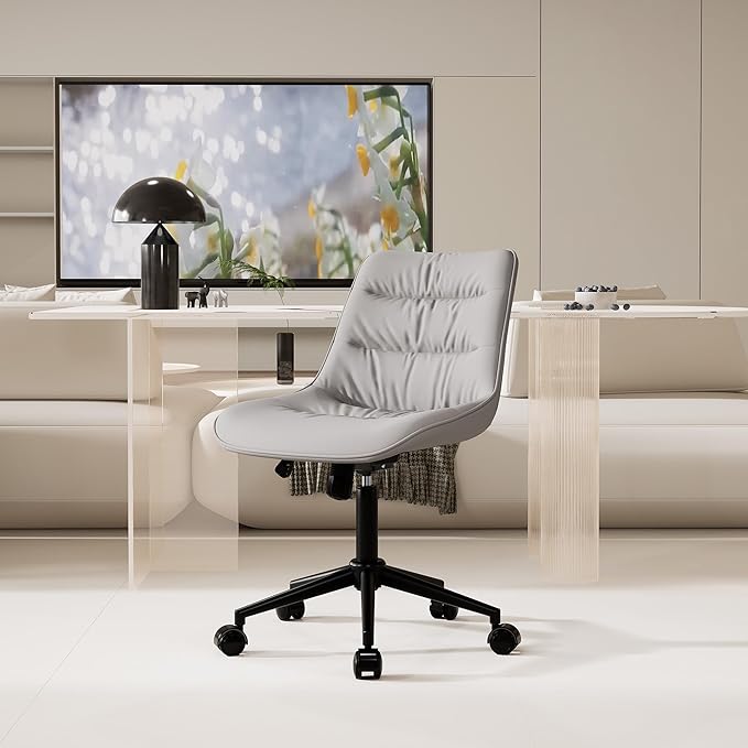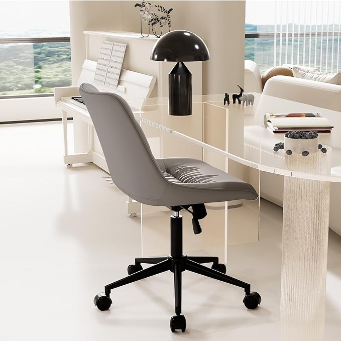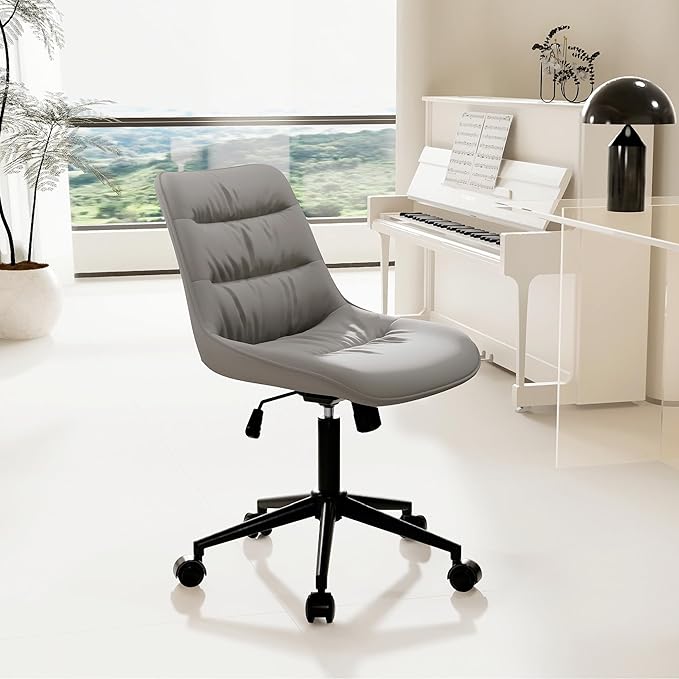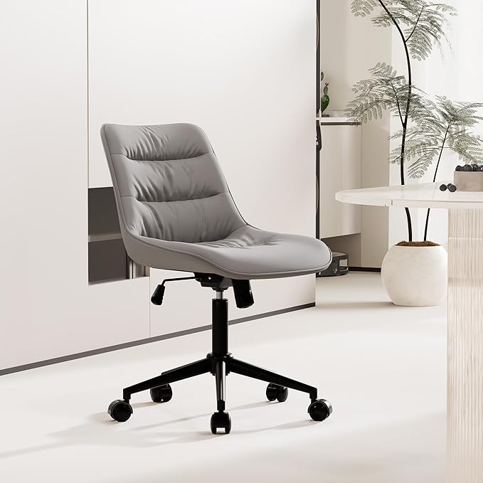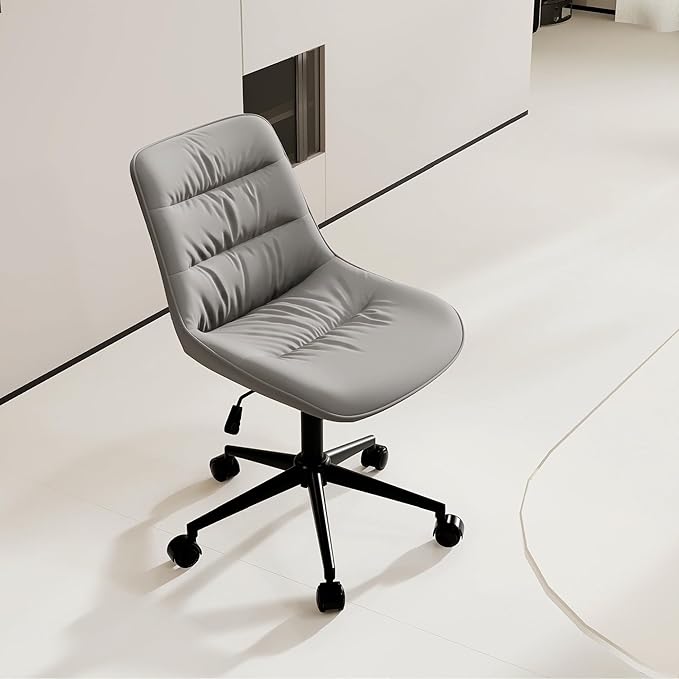 Kidol & Shellder Armless Office Chair Desk Chair Comfy Makeup Vanity Chair with Back Ergonomic Swivel Chair Home Office Desk Chairs with Wheels Rolling Computer Chair Bedroom Accent Chair(Gray)