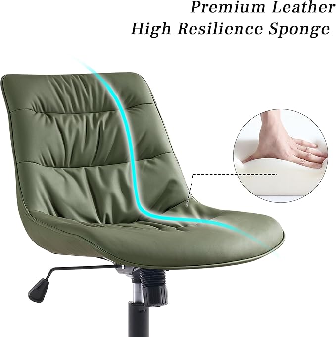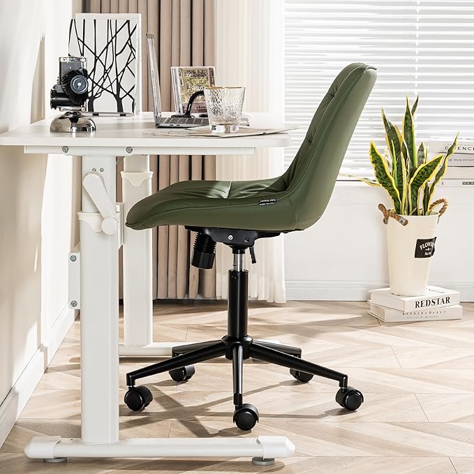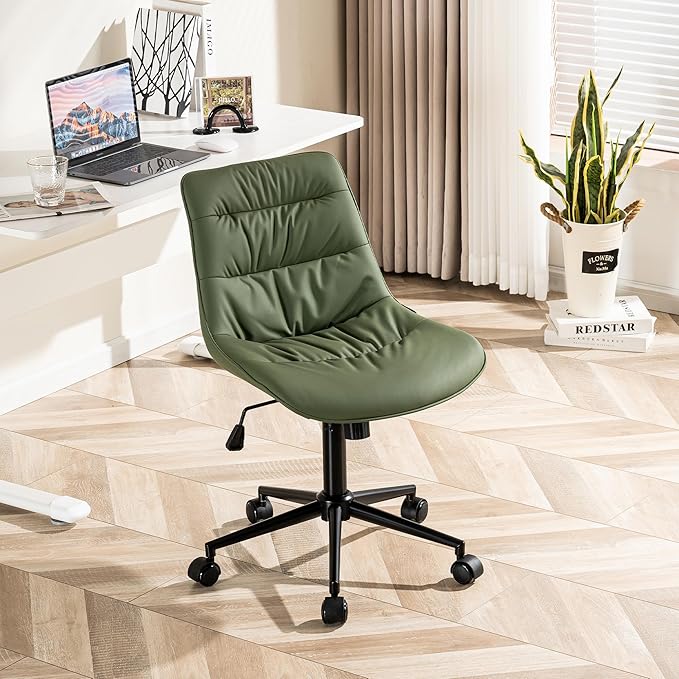 Kidol & Shellder Armless Office Chair Desk Chair Comfy Makeup Vanity Chair with Back Ergonomic Swivel Chair Home Office Desk Chairs with Wheels Computer Chair Bedroom Accent Chair(Olive Green)