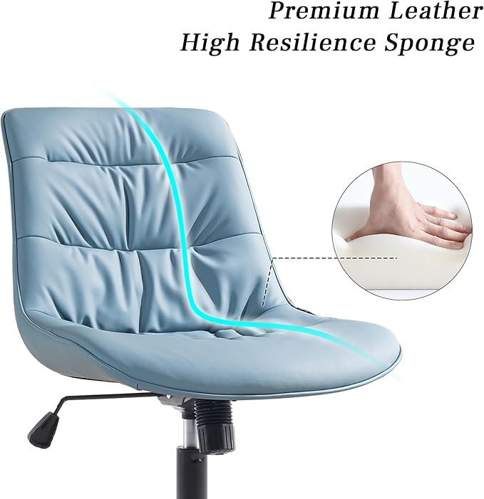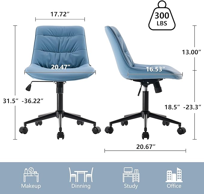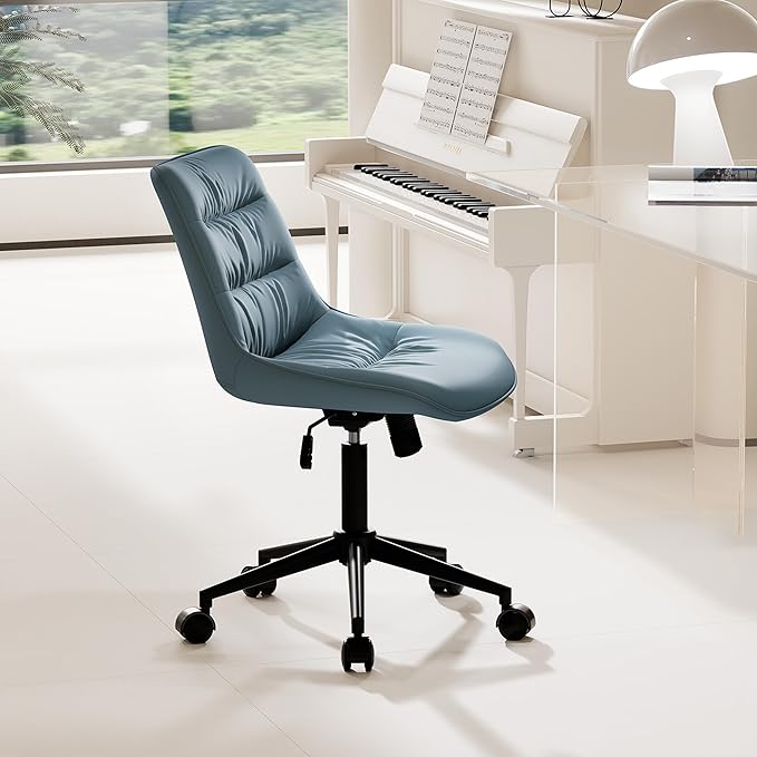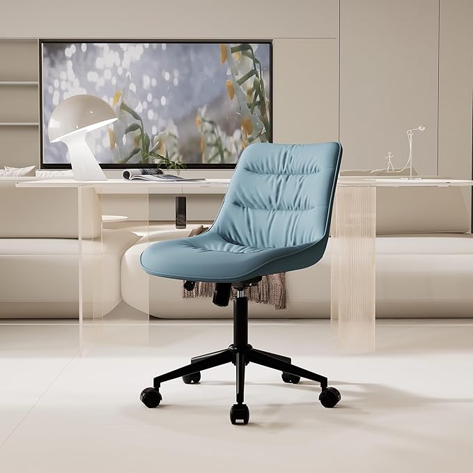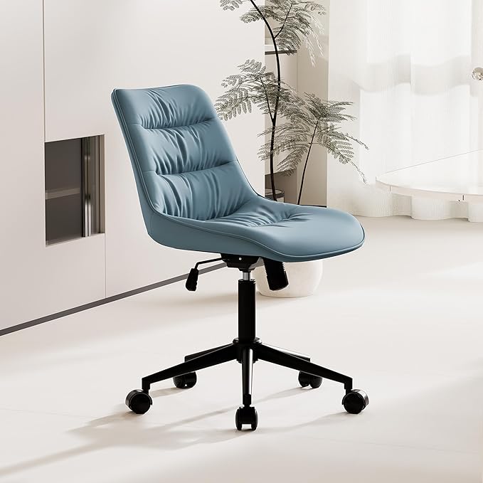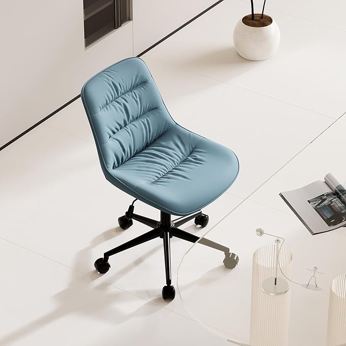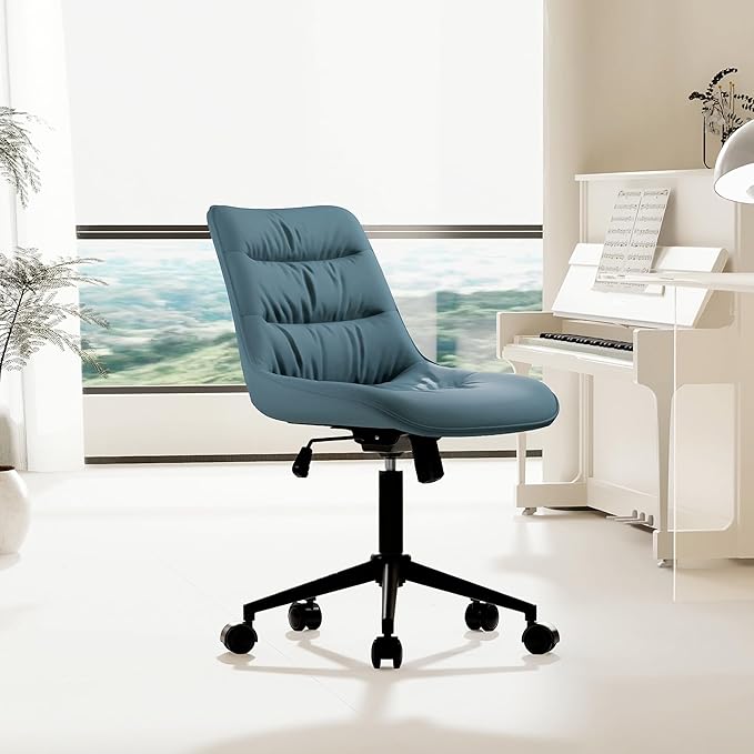 Kidol & Shellder Armless Office Chair Desk Chair Comfy Makeup Vanity Chair with Back Ergonomic Swivel Chair Home Office Desk Chairs with Wheels Rolling Computer Chair Bedroom Accent Chair(Blue)