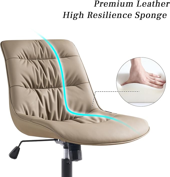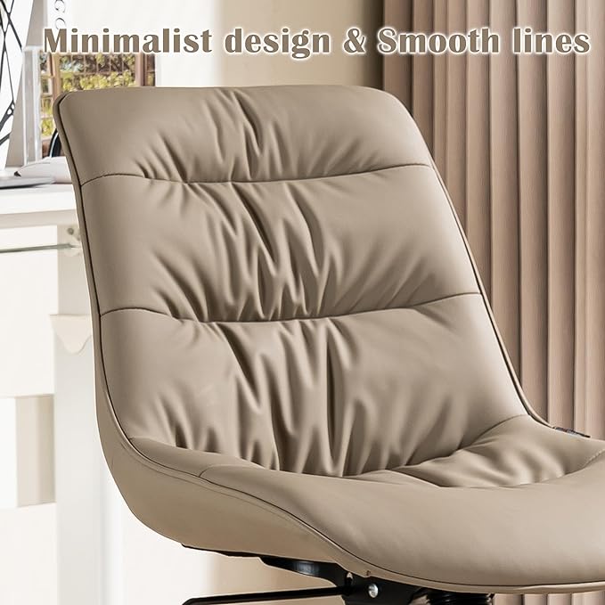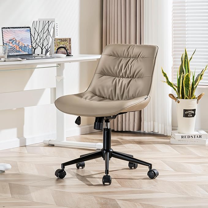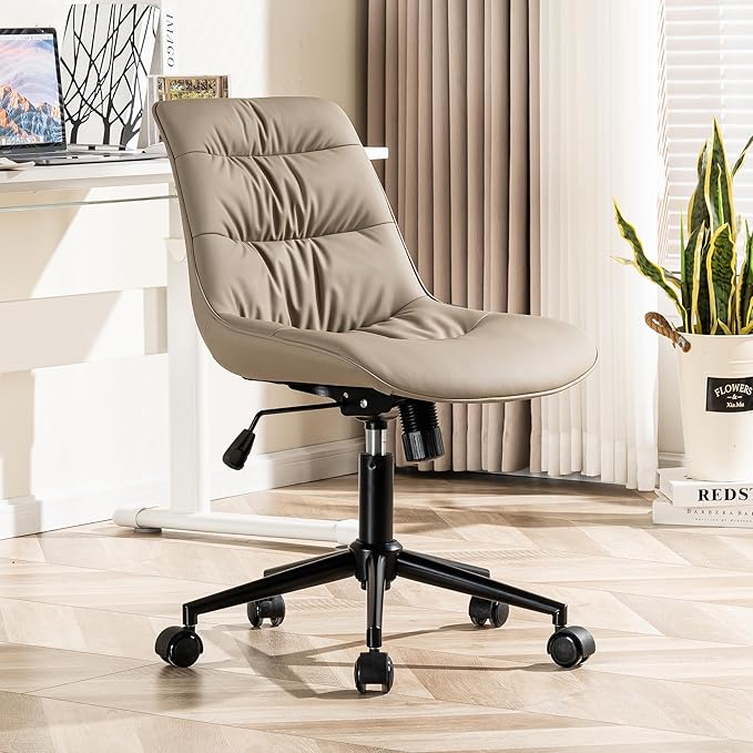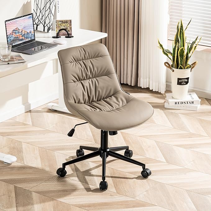 Kidol & Shellder Armless Office Chair Desk Chair Comfy Makeup Vanity Chair with Back Ergonomic Swivel Chair Home Office Desk Chairs with Wheels Rolling Computer Chair Bedroom Accent Chair(Khaki)