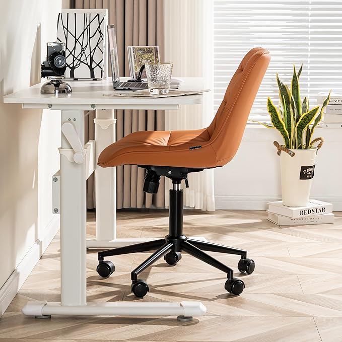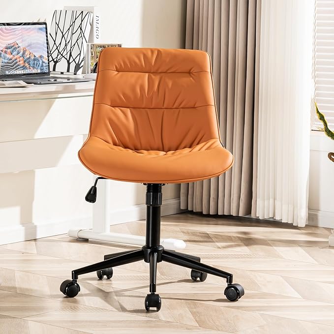 Kidol & Shellder Armless Office Chair Desk Chair Comfy Makeup Vanity Chair with Back Ergonomic Swivel Chair Home Office Desk Chairs with Wheels Computer Chair Bedroom Accent Chair(Matte Orange)