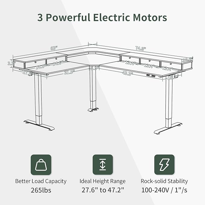 About This Triple Electric Motors: 3-Legs triple motors are faster, smoother, more stable and quieter than dual motors. Electric Height...