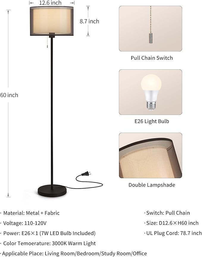 About This 【Wonderful Lighting Atmosphere】This floor lamp has an E26 bulb base, we will configure a 7W LED bulb, 3000K...
