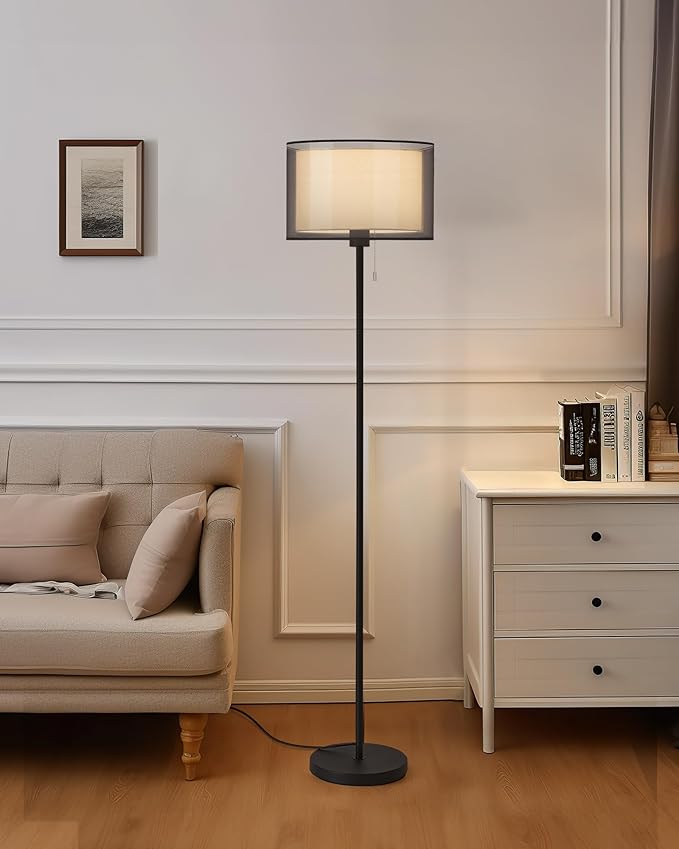 KDG Modern Floor Lamp for Living Room, Tall Standing Floor Lamp Corner Lighting, Fabric Lampshade LED Bulb Bright Pole Light, High Light for Bedroom, Reading, Office, Study Room, Warm Light(Black)