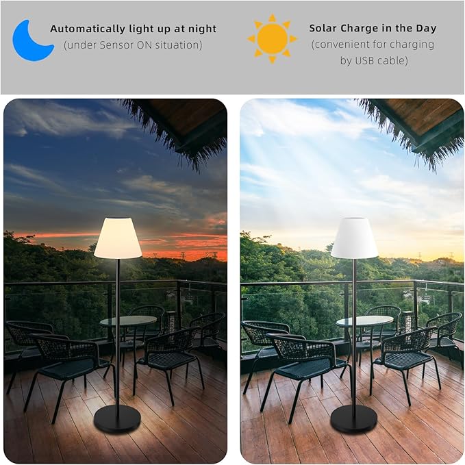 About This 【Light Sensor and Cordless Design】Built-in light sensor of the solar floor lamp, light sensor turn on, outside dusk...
