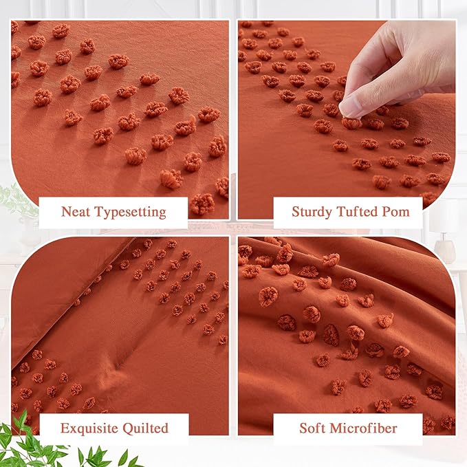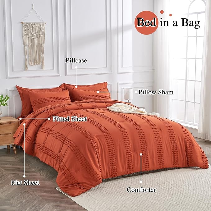 ENJOHOS California King Size Comforter Set with Sheets 7 Pc - Burnt Orange Oversized King Comforter Set, King Bed in a Bag Set, Boho Tufted Bedding with Pom, Lightweight Microfiber Comforter