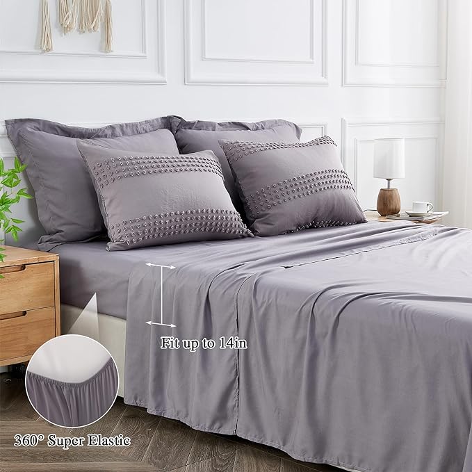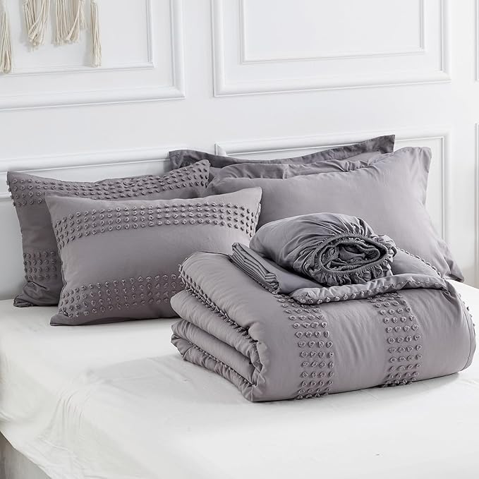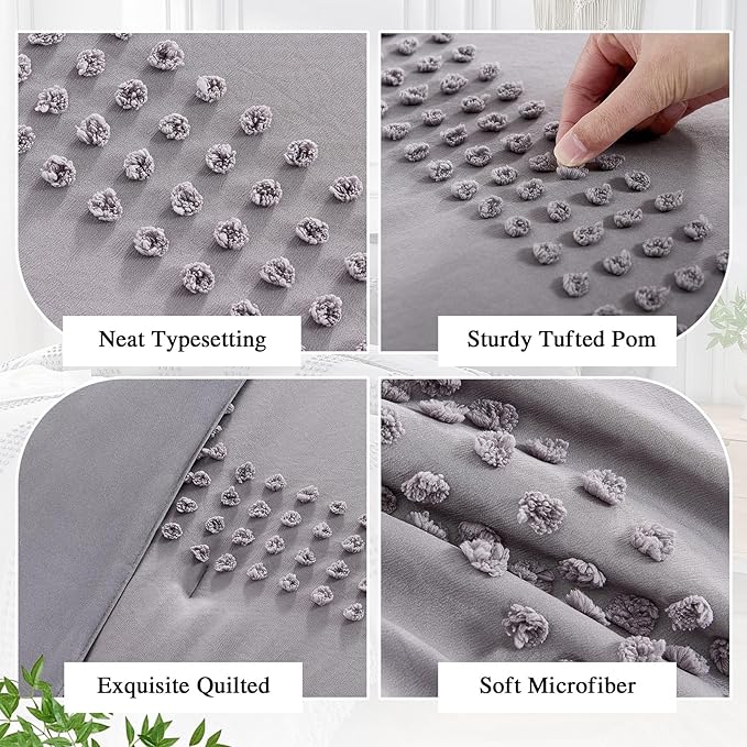 ENJOHOS Twin Comforter Set with Sheets - 5 Pieces Twin Bed in A Bag Set, Grey Twin Size Bedding Comforter Sets, Boho Tufted Comforter with Pom Design, Lightweight Soft Microfiber Comforter Bed Set