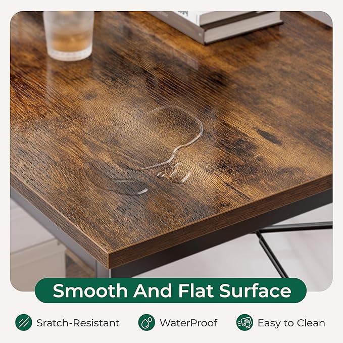 L Shaped Computer Desk with Reversible Storage Shelves, Gaming Corner Desk for Home Office, Writing Study Desk with Metal Frame, Rustic Brown