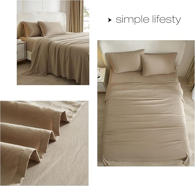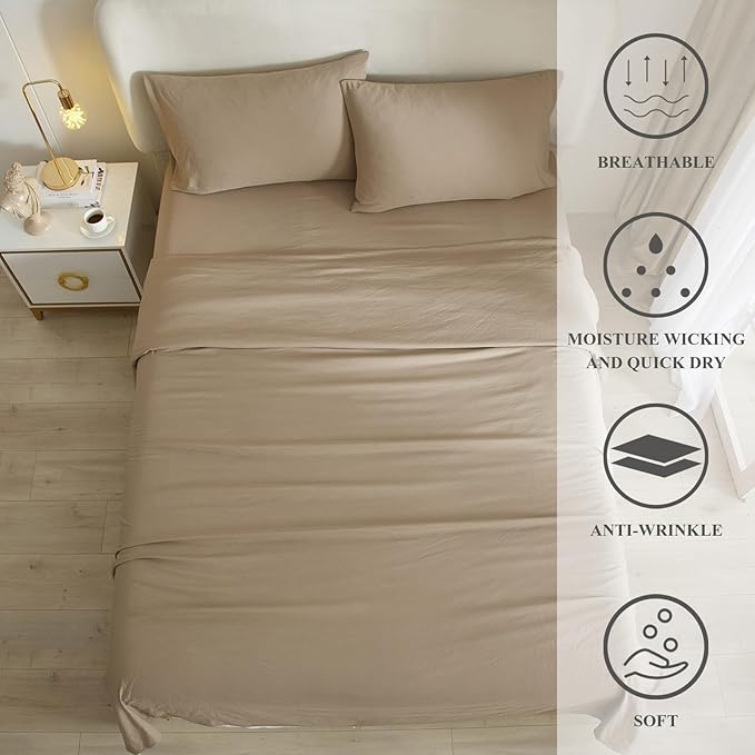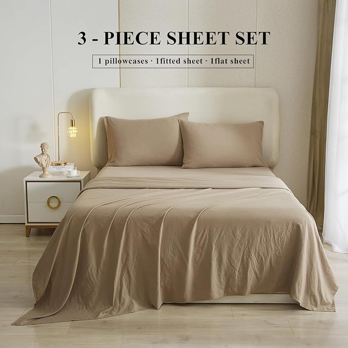 HighBuy Khaki Sheets Twin XL 3 Piece Bed Sheets,16 Inch Deep Pocket,Luxury Soft Twin XL Sheet & Pillowcase Set,Fitted Sheets Twin XL,Cooling Sheets for Twin XL Bed