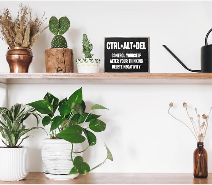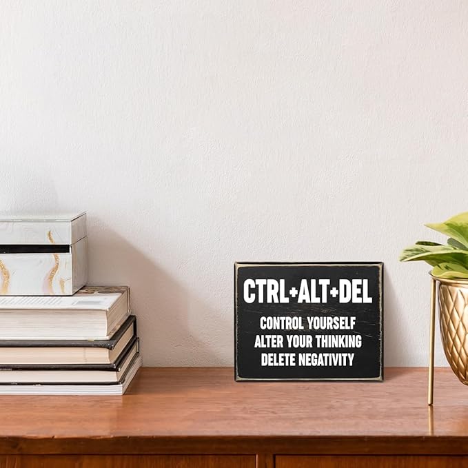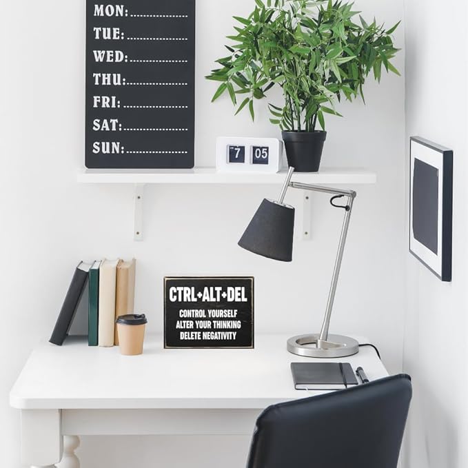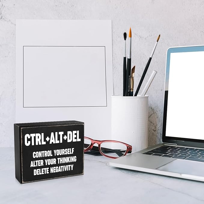 Creoate Home Office Desk Black Decor - Inspirational Farmhouse Wooden Box Sign - Cubicle Decor or Desk Decor for Women - Cute Desk Accessories - Encouragement Gifts