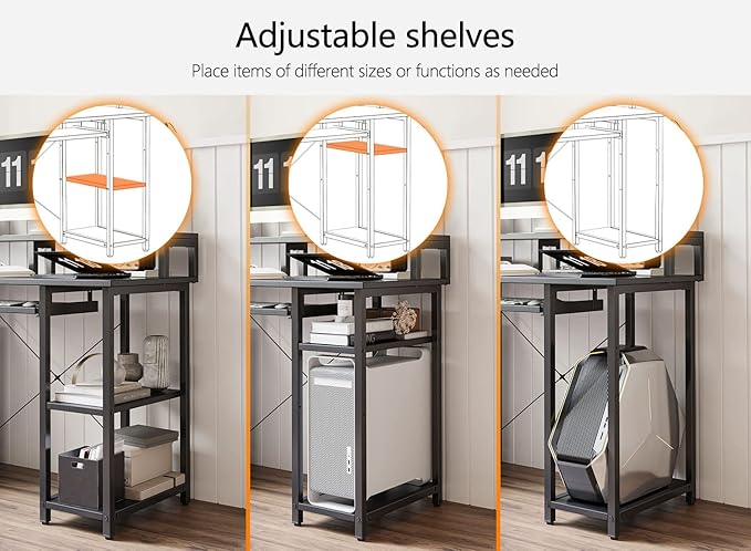 About This Monitor stand shelf: Upper shelf is nice for monitor placement, keeps the monitor at a healthy height with...