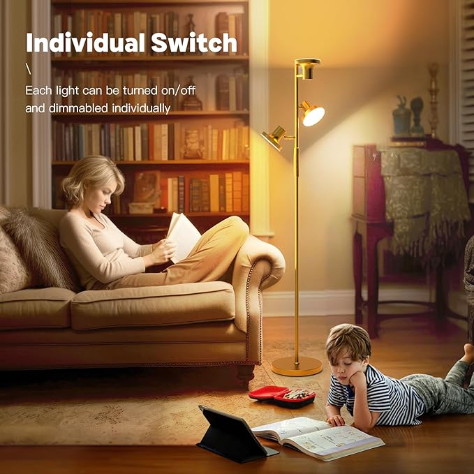 About This 💡Exquisite Appearance & Elegant Decor -- This gold floor lamp uses a unique 3-light design, each light supports...