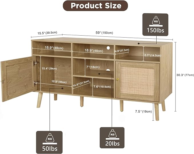 About This 📺Dimensions: 59"W x 15.6"D x 30"H. Measure your place and double-check the dimension before purchase. ⭐Superior Construction: Our...