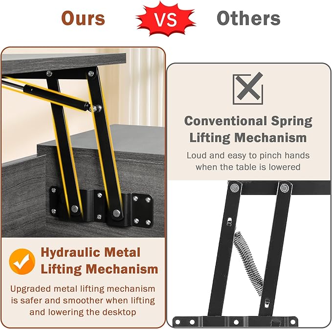 About This 👍Lift Top Design: The lift top coffee table with storage features a liftable tabletop and upgraded metal hydraulic...