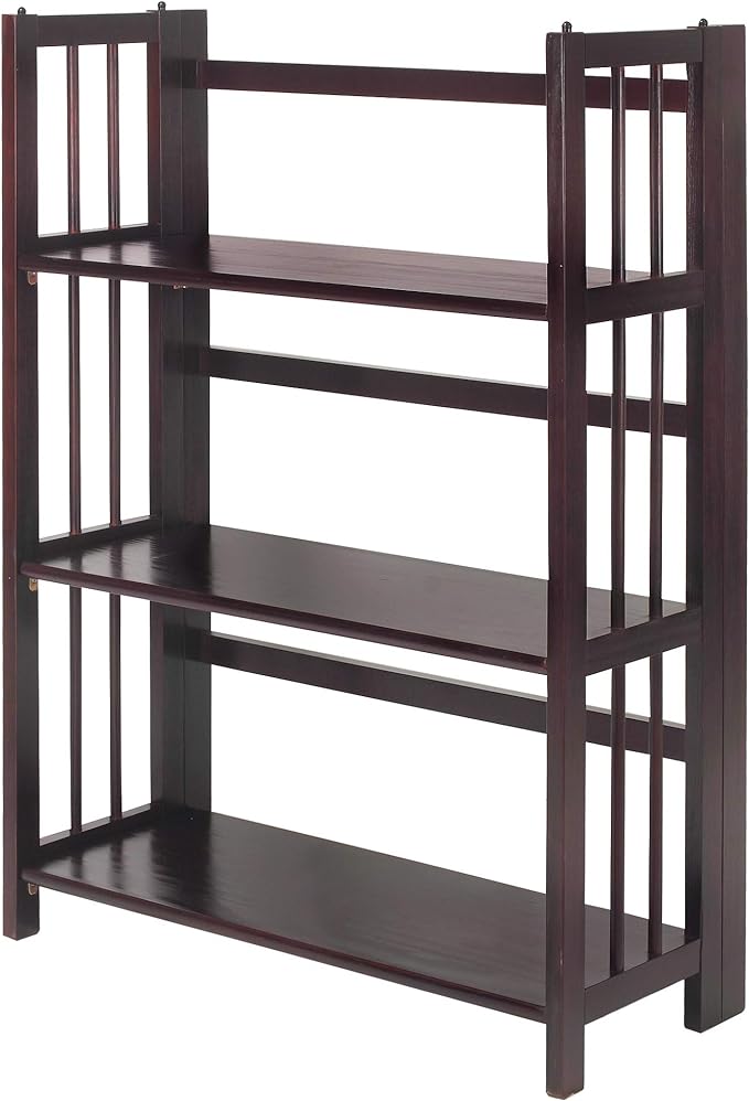 Casual Home 3 Shelf Folding Bookcase, 27.5" Wide, Espresso 3-Shelf Folding Bookcase (14" Wide)-Walnut