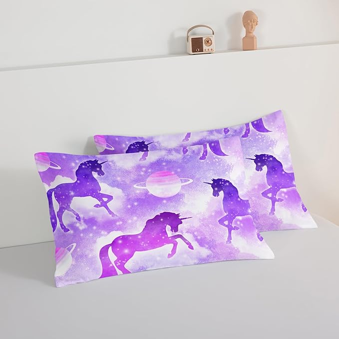 HOSIMA Purple Unicorn Bedding Sets for Girls Kids,3 Piece Soft Microfiber Galaxy Comforter Princess Crib Bedding Set Unicorn Bedroom Decor for Girls Room,Planet Cloud Full Size Bed in a Bag.