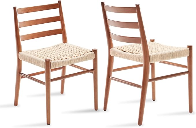 STARY Wood Rattan Dining Room Chairs Comfortable Woven Seat, Fully assembled, Walnut - Set of 2