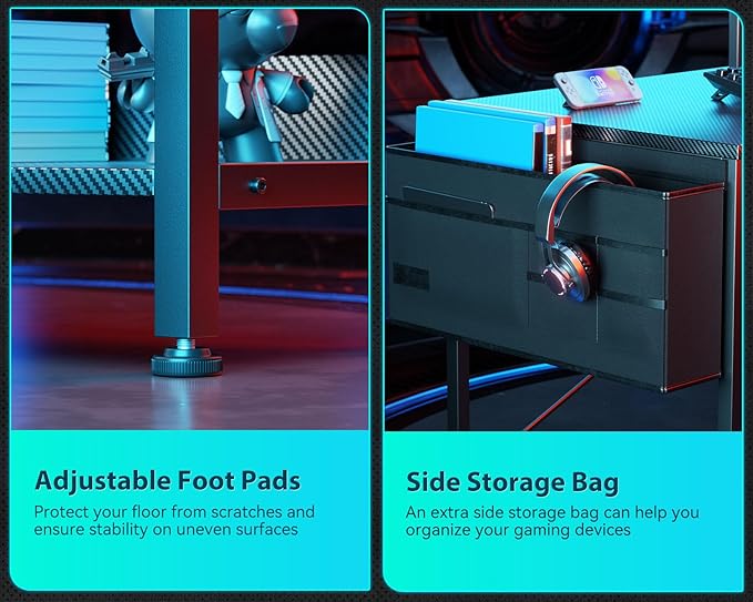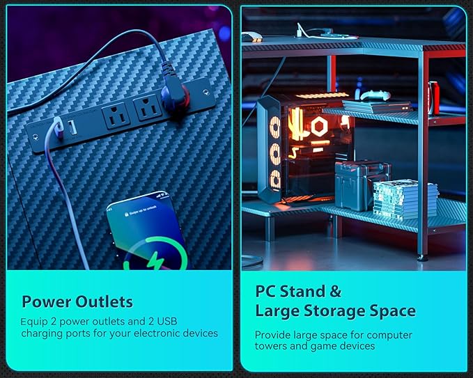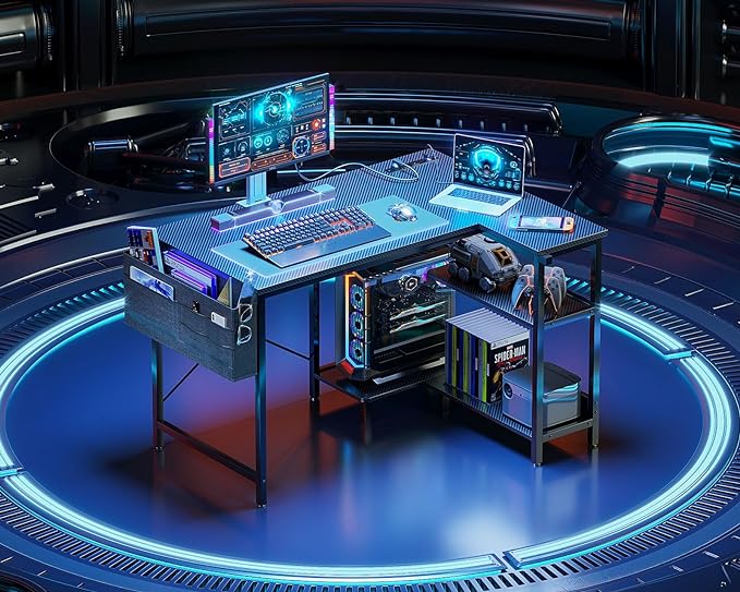 ODK 40 Inch Small L Shaped Gaming Computer Desk with Power Outlets,Corner Desk with Reversible Storage Shelves & PC Stand for Small Space, Modern Simple Home Office Table, Carbon Fiber Surface, Black