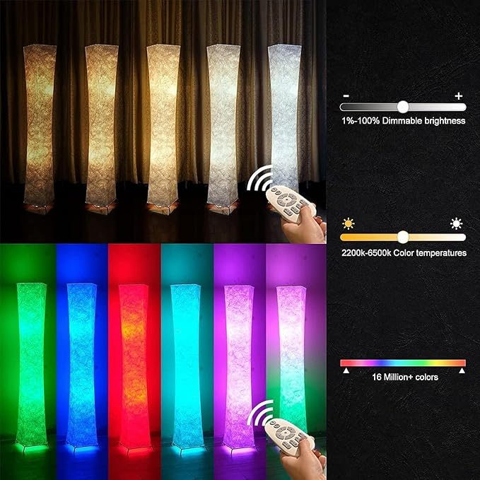LEONC Design Floor Lamp, 61 inches LEONC Standing Lamp, RGB 7 Colors Changing LED Bulbs and 10 Levels Brightness, Remote Control and Fabric Shade, Modern for Bedroom, Kids Room&Play Room (RGB/Remote)