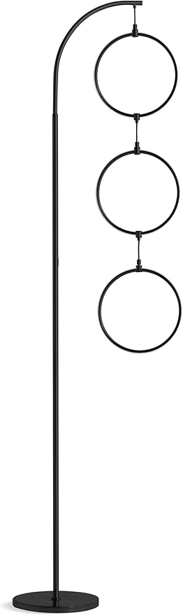 Brightech Nova Modern Floor Lamp Matches Living Room Décor - Contemporary Arc Tall Lamp with 3-Circle Ring-Style Pendant - Over The Couch Standing on Arching Pole - Eclectic- Black