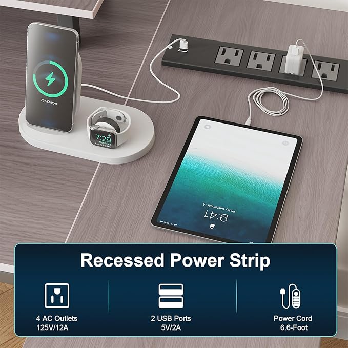 About This L Shaped Computer Desk with LED Lights: The L shaped desk is equipped with LED light strips which...