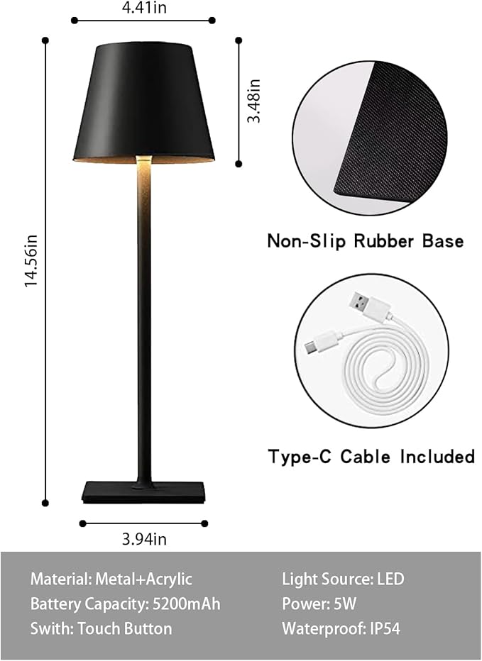 About This 【Portable Cordless & 5200mAh Build-in Battery Rechargeable】This Built-in 5200mAh Nerefou rechargeable battery powered lamp can be used for...