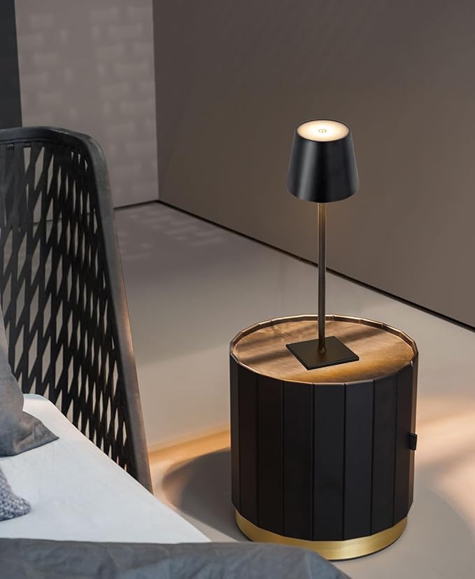 2 Pack Cordless Table lamp, 5200mAh Battery Operated Lamp,3 Color Stepless Dimming Desk Lamp,IP54 Waterproof Outdoor Table Lamps for Restaurant/Bedroom/Bars/Camping/Cafe Night Light (Black-2)