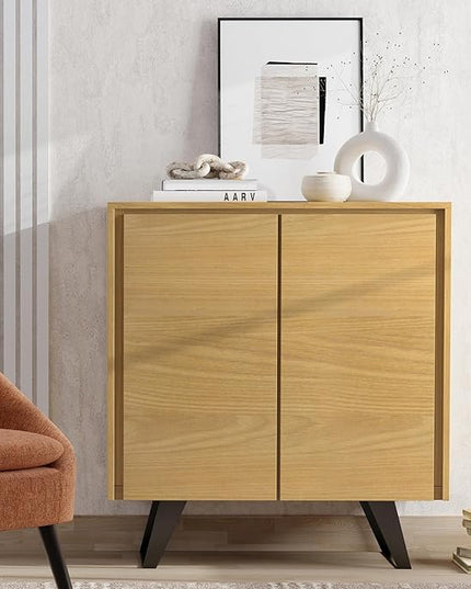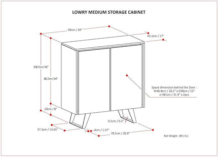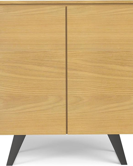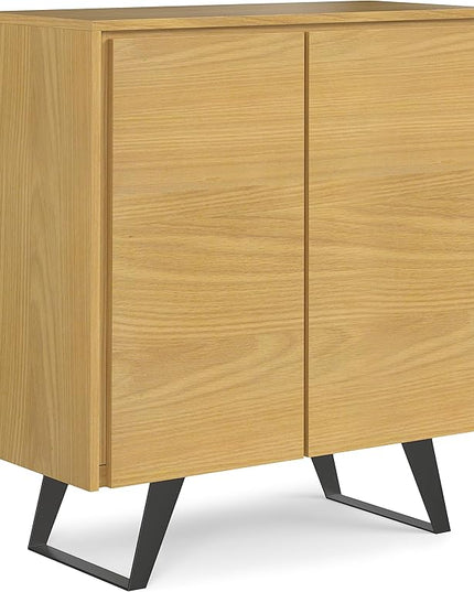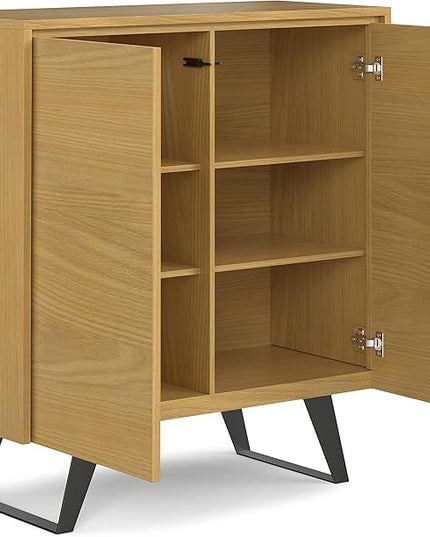 SIMPLIHOME Lowry SOLID WOOD and Metal 39 Inch Wide Modern Industrial Medium Storage Cabinet in OAK WOOD, For the Living Room, Entryway and Family Room