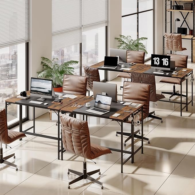 HOOBRO Computer Desk, Home Office Desk with Power Outlet, Modern Study Writing Desk with 3 Hooks for Study Room, Home Office, Sturdy and Stable, Easy to Assemble, Rustic Brown and Black BF41UDN01
