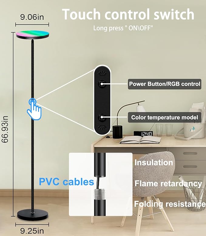 About This 【ღDouble Sided Lighting Designღ】Smart floor lamp features a double-sided lighting design.The upward side is an RGB light,RGB main...