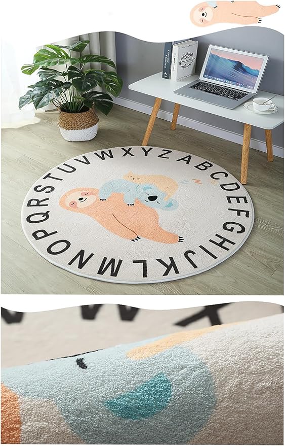 ABC Round Rug for Kids Warm and Soft Alphabet Nursery Animal Area Rugs Fun Rugs for Play Rooms Non-Slip Mats Crawling Mats Decorative Rugs for Bedrooms Living Rooms (Sloth, 78in)