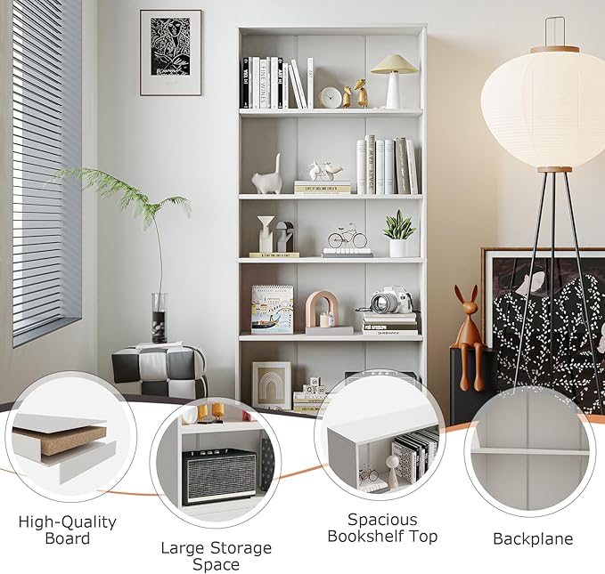 About This 【Eco-friendly Board】Manufactured from high-quality engineered wood, no special care needed, scratch-, and water-resistant 【Adjustable Shelf】Perfectly sized 5-tier bookcase...