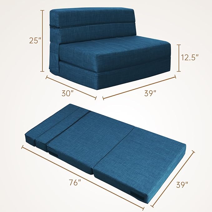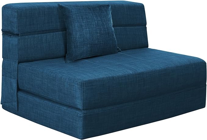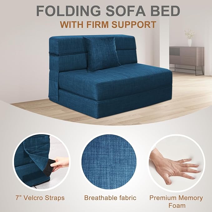 Folding Sofa Bed Couch Memory Foam with Pillow Sleeper Chair Lazy Couch Twin Size Futon Convertible Guest Beds,Washable Cover,Dark Blue