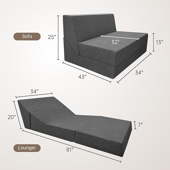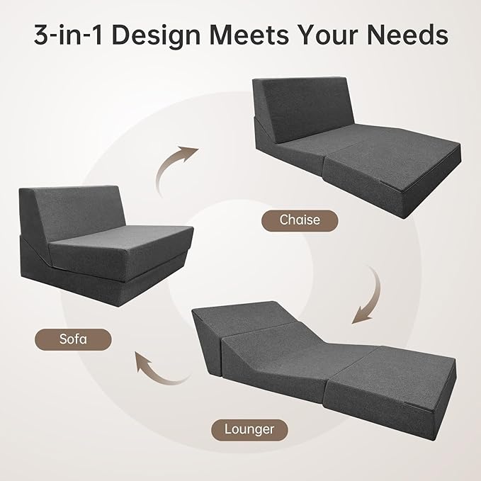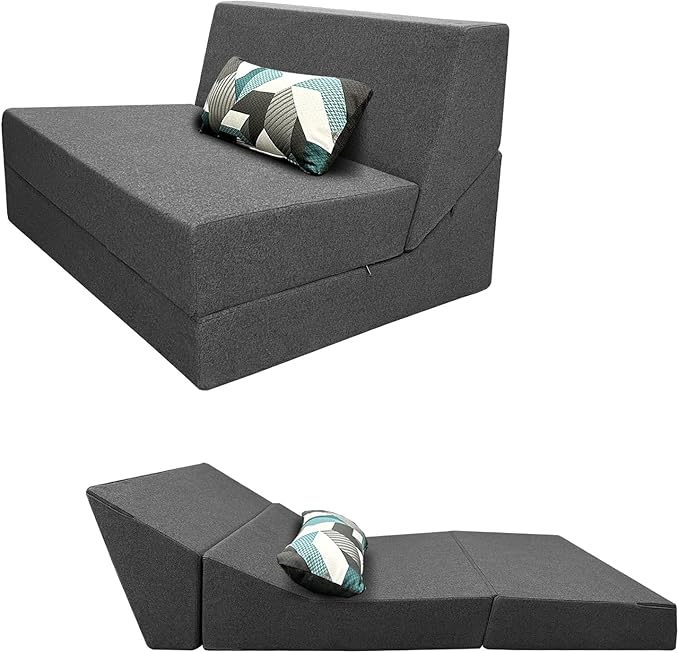 Memory Foam Folding Sofa Couch Bed with Pillow Sleeper Lazy Chair Modern Convertible Floor Futon for Living Room Apartment Guest Office,Washable Cover,Dark Gray