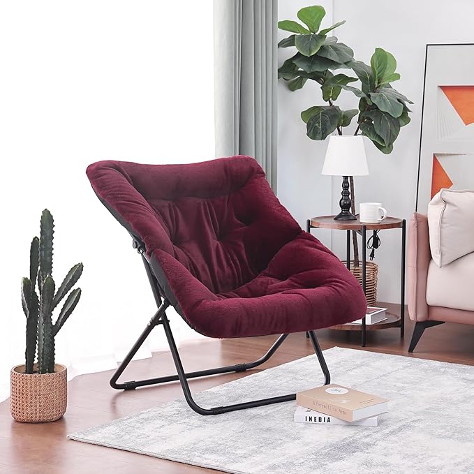 Tiita Comfy Saucer Chair, Soft Faux Fur Oversized Folding Accent Chair, Lounge Lazy Chair for Kids Teens Adults, Metal Frame Moon Chair for Bedroom, Living Room, Dorm Rooms