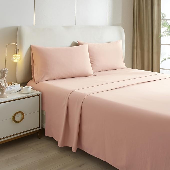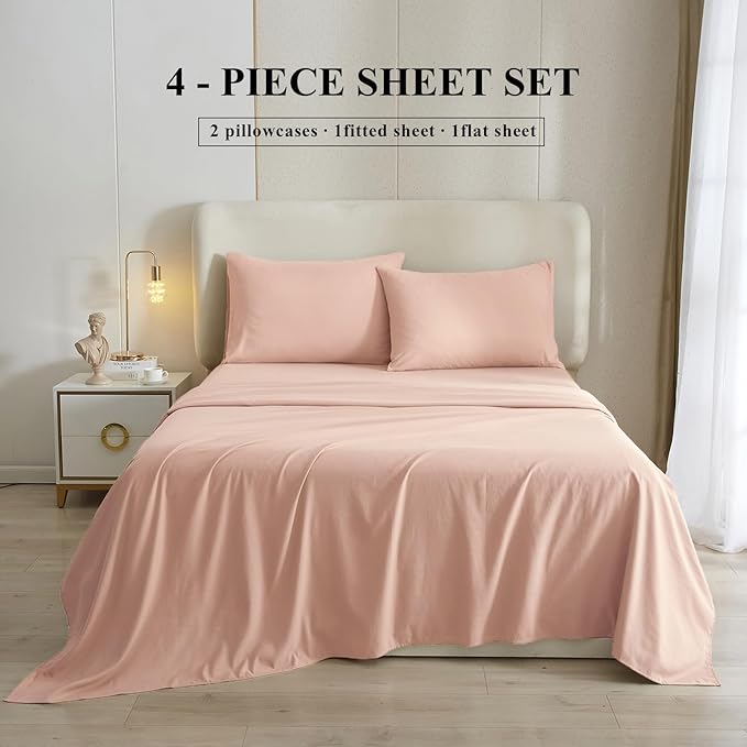 Blush Pink Sheets King 4 Piece Bed Sheets,15 Inch Deep Pocket,Luxury Soft King Sheet & Pillowcase Set,Easy Fit Fitted Sheets King,Wrinkle & Shrink Resistant Cooling Sheets for King Size Bed