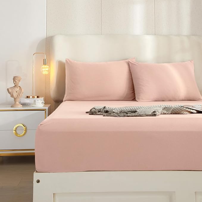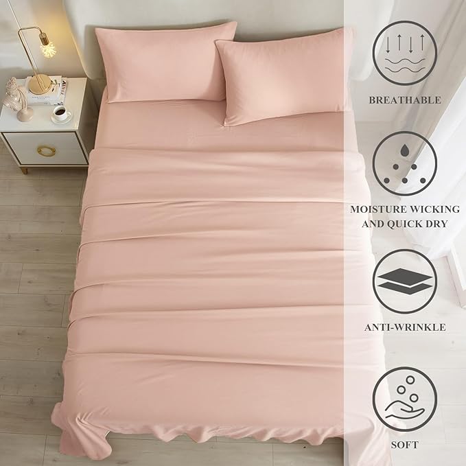 HighBuy Blush Pink Full Size Sheet Set Extra Soft Deep Pocket Sheets Set,4 Piece Bed Sheets Set Fit 16 Mattress,Wrinkle,Fade,Stain Resistant Cooling Bed Sheets,Fitted Sheets,Pillowcases Set
