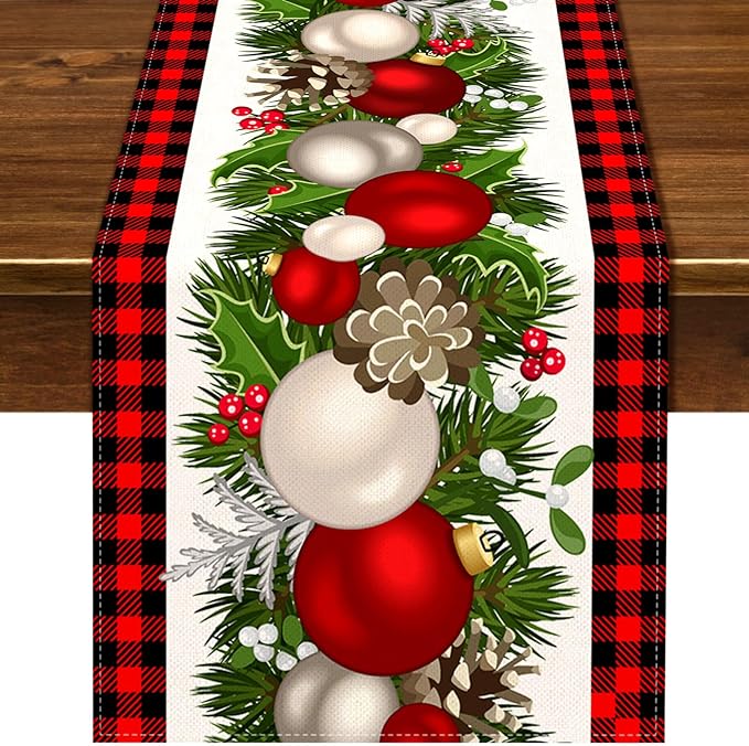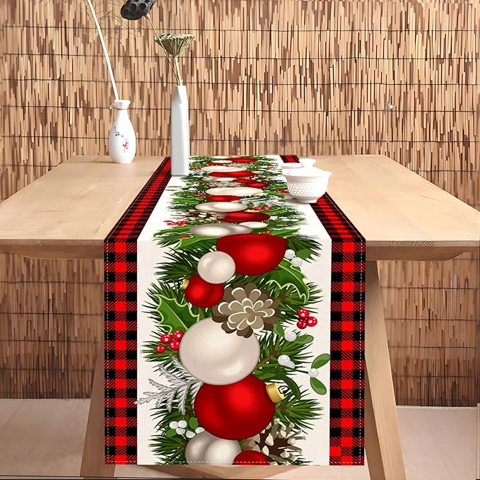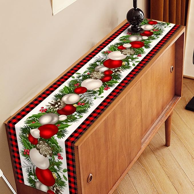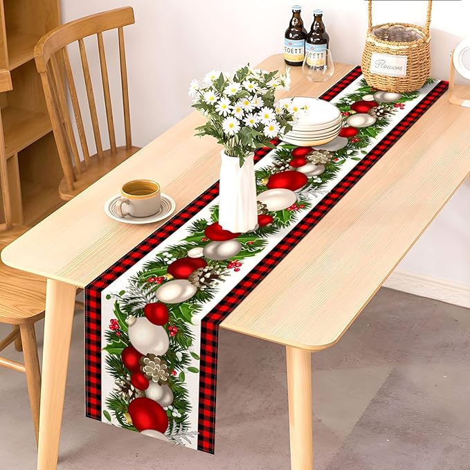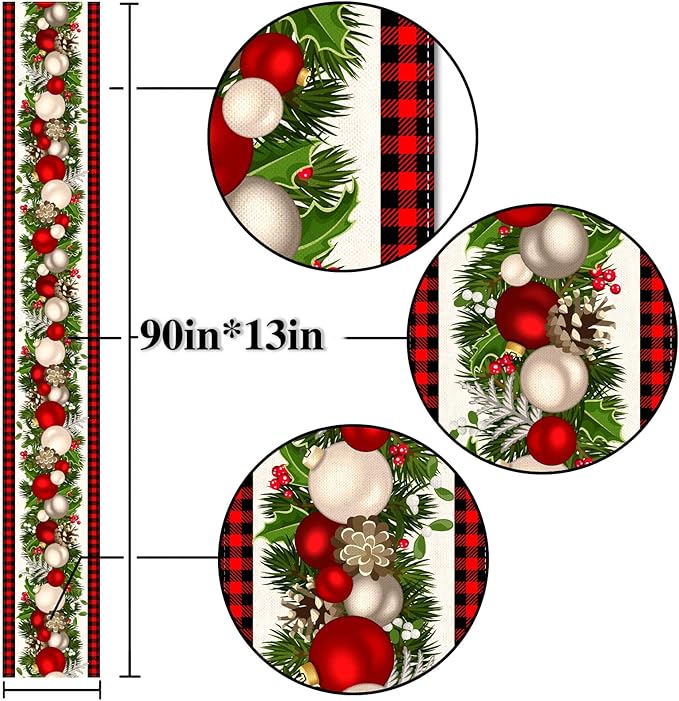 Nepnuser Black and Red Buffalo Check Plaid Christmas Table Runner 90 Inches Long Seasonal Winter Xmas Party Decoration Holiday Home Kitchen Dining Room Decor