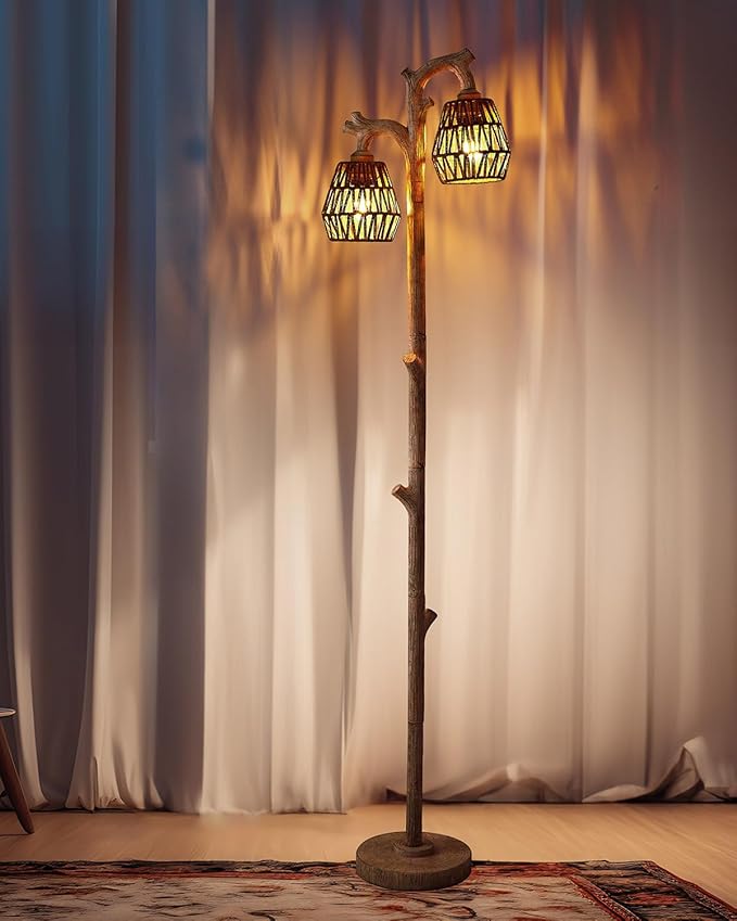 About This ✔️Farmhouse Floor Lamp: This standing lamp, Retro style design Tree Trunk faux wood lamps,the retro resin base and...