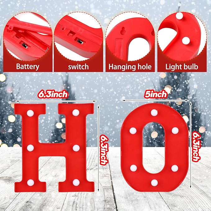 VIHOSE Christmas LED Letter Lights Sign Table Decoration Christmas Light up Letters Battery Powered Letter for Home Bar Christmas Party Bedroom Tabletop Decoration Gift(Ho Ho Ho)
