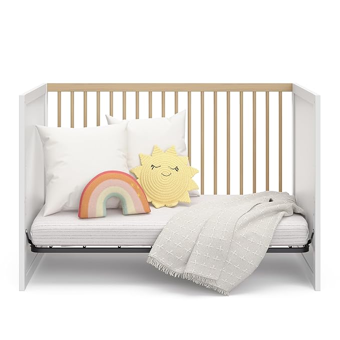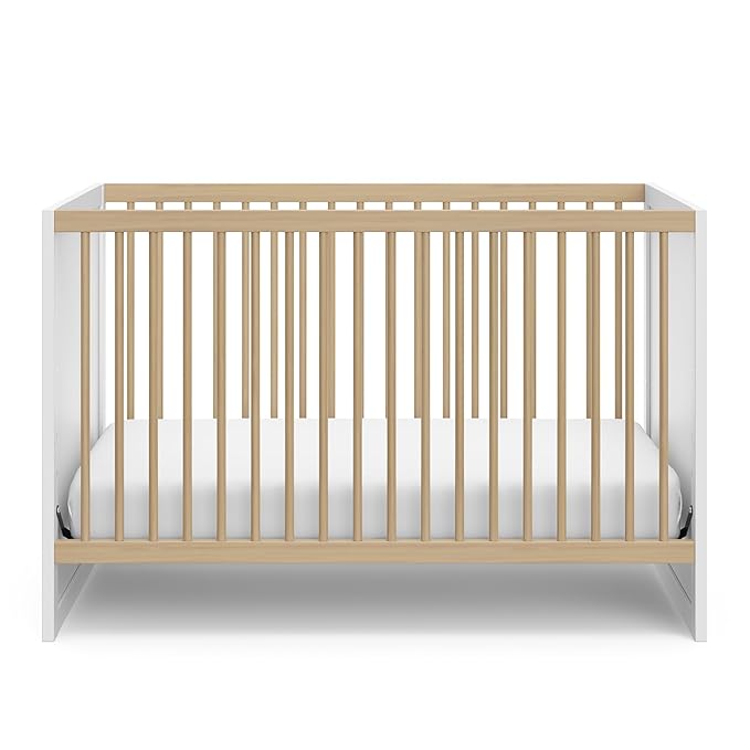 Storkcraft Calabasas 3-in-1 Convertible Crib (White with Driftwood) – GREENGUARD Gold Certified, Fits Standard Crib Mattress, Converts to Toddler Bed, Modern Style, Easy 30-Minute Assembly
