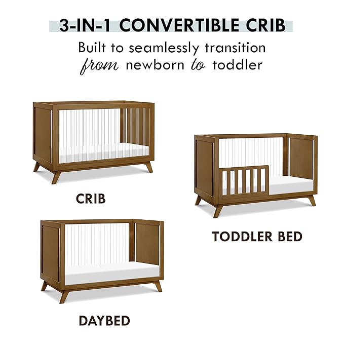 DaVinci Otto 3-in-1 Convertible Crib in Walnut with Acrylic Slats, Greenguard Gold Certified