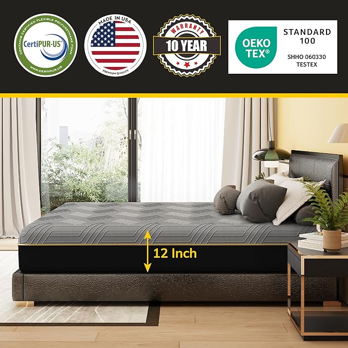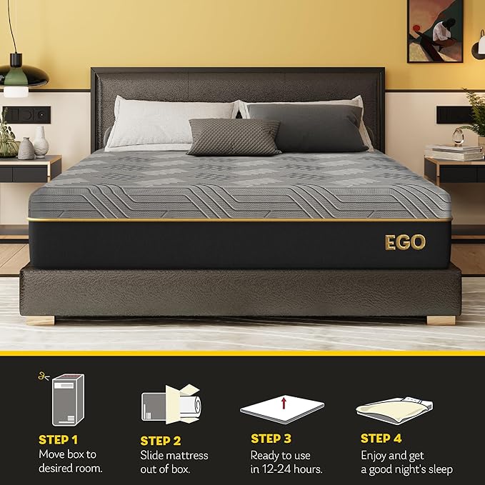 EGOHOME Hybrid Queen Mattress 12 Inch, Mattress with Cooling Cover, Comfort Foam & Pocket Spring Bed in a Box, Targeted Support Pressure Relief, CertiPUR-US Certified, Made in USA, 60x80x12 Black
