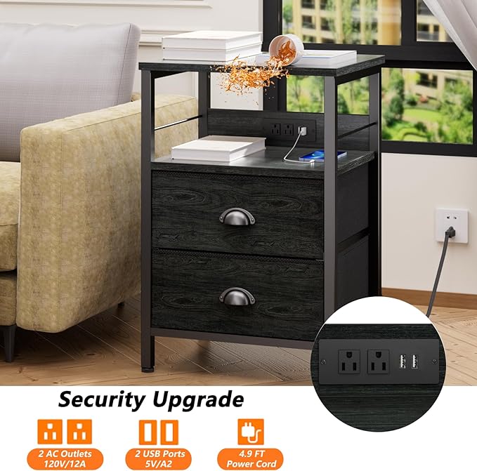 About This Nightstand with Charging Station: This black side table set of 2 come with built-in 2 outlets and 2...